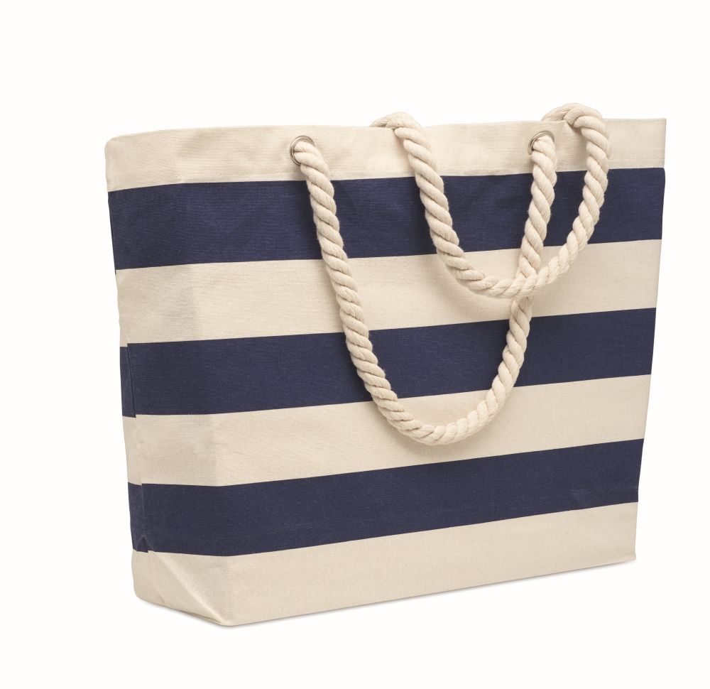 Pruhovaná plážová nebo nákupní taška z bavlny s rukojetí ze šňůry. 220 g/m2. Rozměry: 55x15x39cm