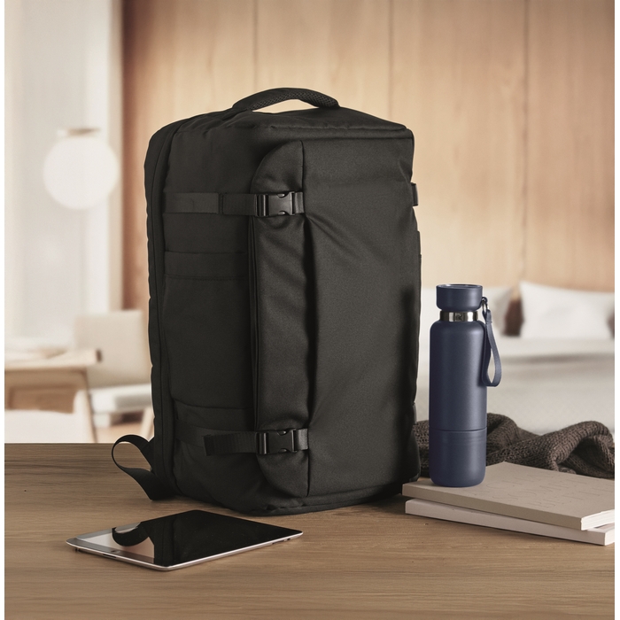 Velký cestovní batoh na 17palcový notebook z polyesteru 600D RPET. Má několik přihrádek. Jednu hlavní na oblečení, dvě polstrované na notebook a tablet a další. Polstrovaná záda ,ramenní popruh a madlo do ruky.Rozměry: 34 x 23 x 52cm