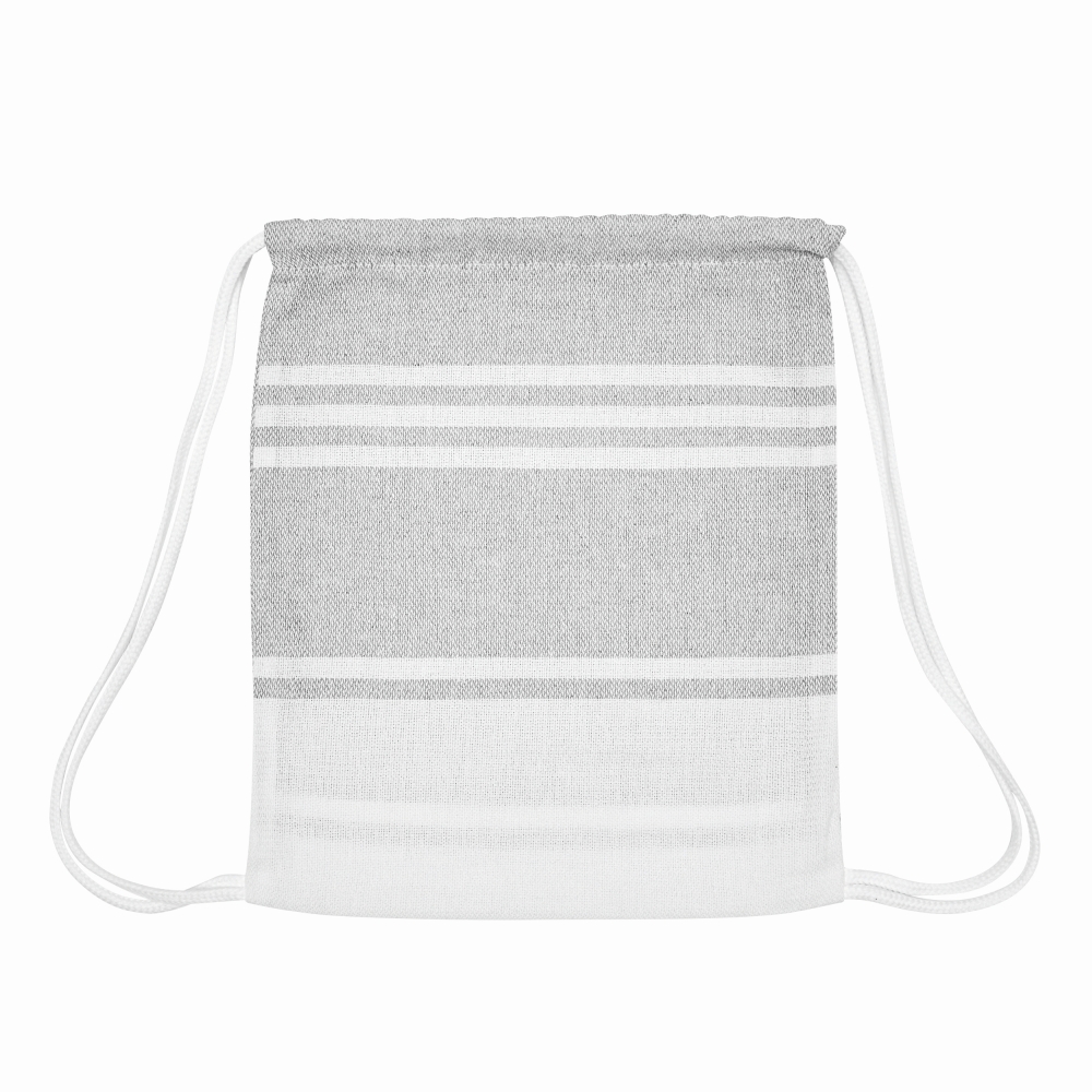 Velký plážový/saunový ručník velký ručník s bílými pruhy a třásněmi, v barevně ladícím sáčku se stahovací šňůrkou. Rozměry: cca 90 x 160 cm