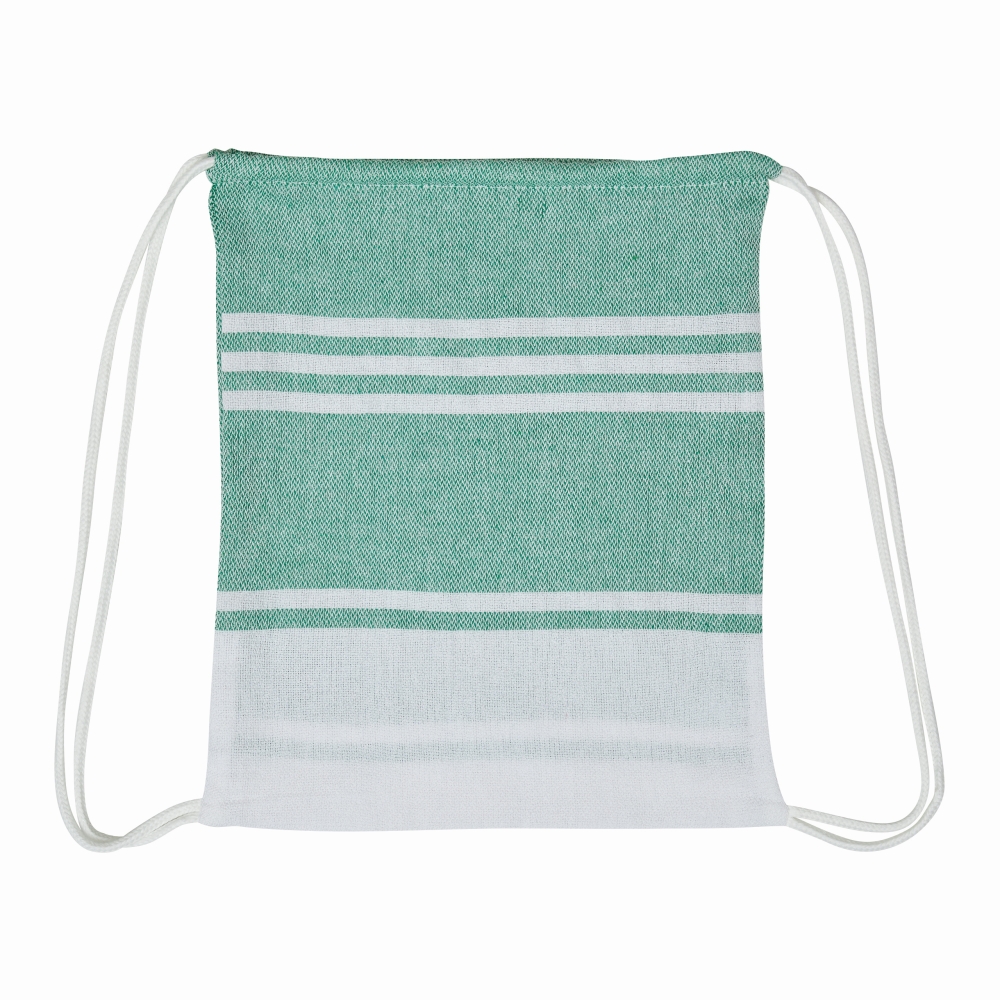 Velký plážový/saunový ručník velký ručník s bílými pruhy a třásněmi, v barevně ladícím sáčku se stahovací šňůrkou. Rozměry: cca 90 x 160 cm