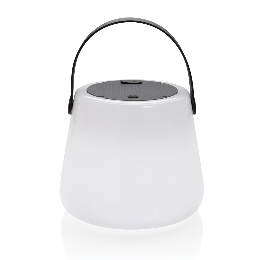 Solární stolní LED světlo se zabudovanou baterií s kapacitou 1 200 mAh. Plné nabití skrze USB C kabel za 3 hodiny. Doba svícení na jedno plné nabití 20 hodin. 10 hodin nabíjení na slunci poskytuje dobu svícení 3-4 hodiny. Voděodolné (IPX 4). Vyrobeno z RCS recyklovaného ABS plastu. RCS (Recycled Claim Standard) je globální standard, který umožňuje ověřit použití recyklovaného materiálu v produktu napříč celým dodavatelským řetězcem. Celkový podíl recyklátu dle váhy produktu: 71 %. Rozměry: 14 x 14 x 12 cm.