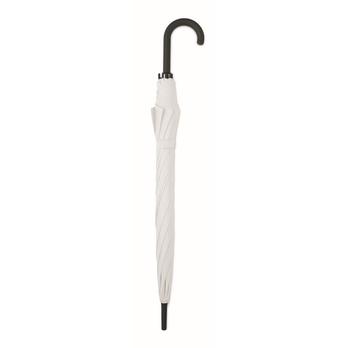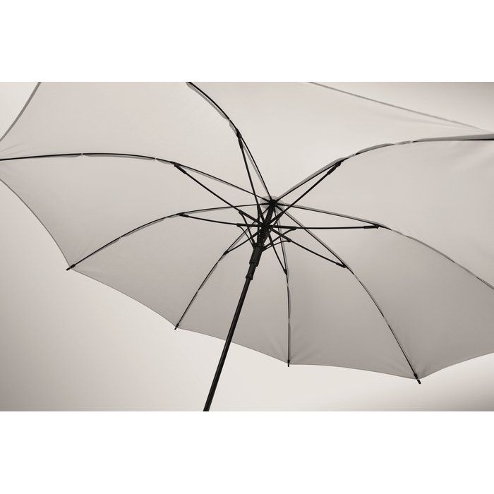 Větruodolný 23palcový deštník s automatickým otvíráním. Rám ze skelných vláken a panely z tkaniny 190T pongee. Plastové špičky a vršek. Pogumovaná ohnutá rukojeť z PP plastu. Manuální zavírání.Rozměry: 58,5cm