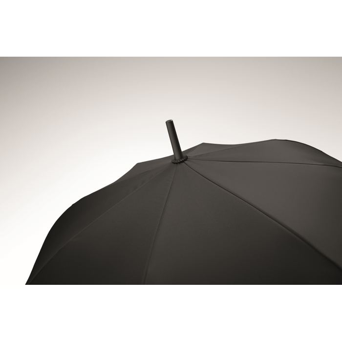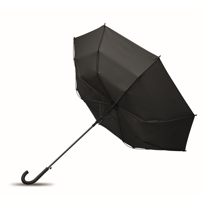 Větruodolný 23palcový deštník s automatickým otvíráním. Rám ze skelných vláken a panely z tkaniny 190T pongee. Plastové špičky a vršek. Pogumovaná ohnutá rukojeť z PP plastu. Manuální zavírání.Rozměry: 58,5cm