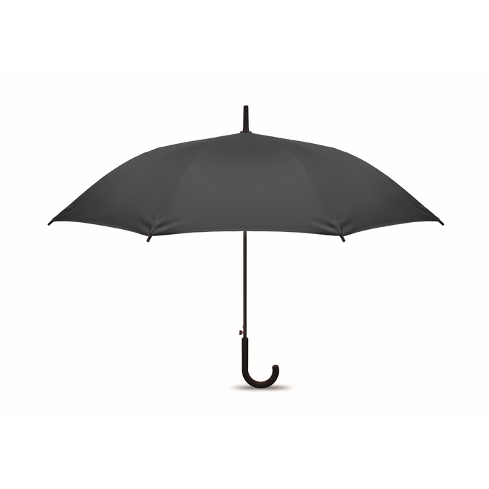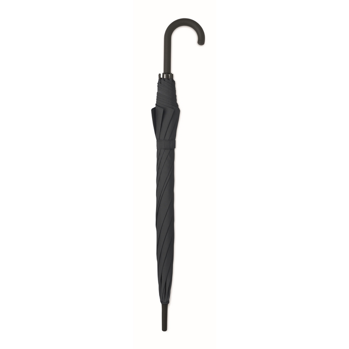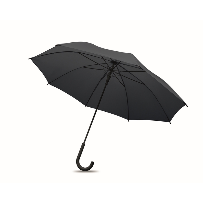 Větruodolný 23palcový deštník s automatickým otvíráním. Rám ze skelných vláken a panely z tkaniny 190T pongee. Plastové špičky a vršek. Pogumovaná ohnutá rukojeť z PP plastu. Manuální zavírání.Rozměry: 58,5cm