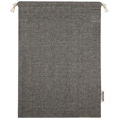 Dárková taška z recyklované bavlny certifikované GRS s bavlněným šňůrkovým uzávěrem. Ideální pro dávání dárků nebo ukládání předmětů. Velikost: 30 x 42 cm.