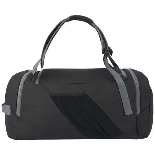 Voděodolný batoh 2 v 1 vyrobený z recyklovaných materiálů s certifikací GRS, včetně zipů. Má prostornou hlavní přihrádku s otvorem ve tvaru U pro snadné skladování a přístup, dvě boční kapsy na zip (včetně přihrádky na boty), jednu přední kapsu na zip, síťovanou kapsu na lahev s vodou na zadní straně a reflexní lemování pro zviditelnění. Tuto tašku lze nosit 3 různými způsoby: V ruce, přes rameno nebo jako batoh díky polstrovaným a nastavitelným ramenním popruhům. Z recyklovaných materiálů GRS je vyrobena hlavní tkanina, podšívka, popruhy a zipy. Kapacita: 35 litrů. Neobsahuje PVC.