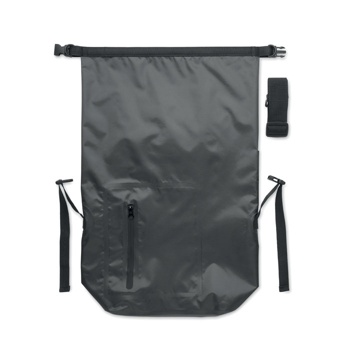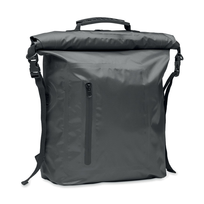 Voděodolný rolovací batoh z recyklovaného 210D polyesteru. Objem 30 litrů. Rozměry: 37 × 55 cm.