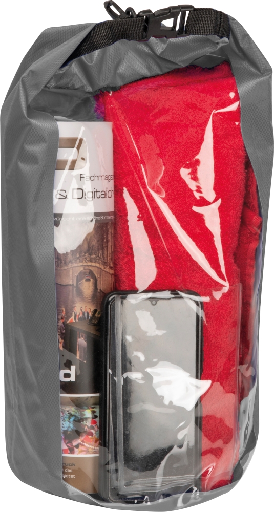 Vodotěsný uzavíratelný sáček s praktickou plastovou karabinou pro uchycení a objemem 10 litrů. Rozměry: 32 x 18,5 x 45 cm