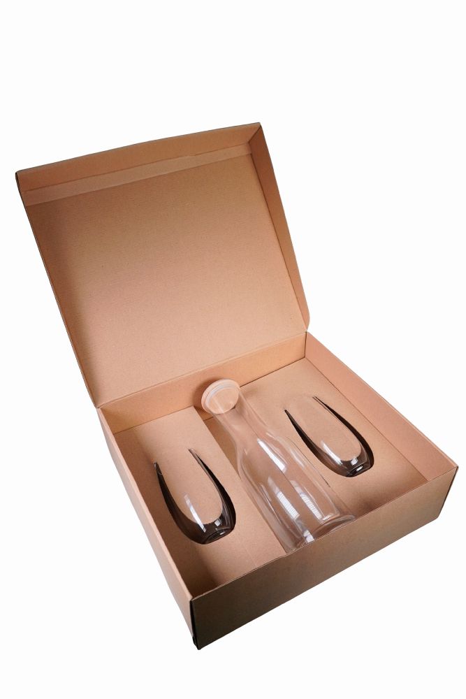 Rozměry: sklenice O 7,3 × 15,2 cm, karafa O 9,5 × 31 cm, balení 37,5 × 11 × 34 cm.