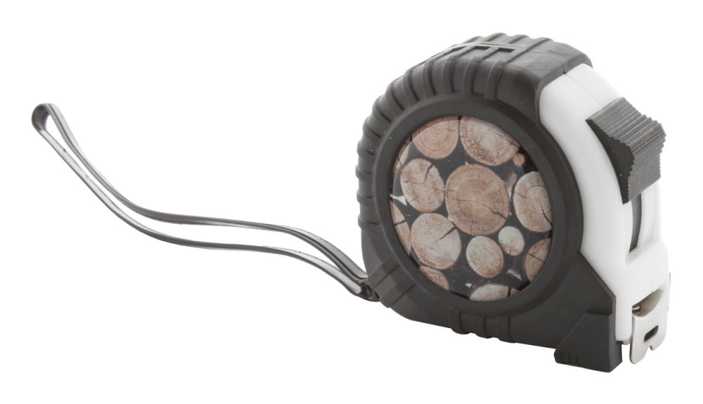 Plastový svinovací metr s kovovým klipem a šňůrkou na ruku, délka 7,5 metrů. Rozměr: 85×85×40 mm