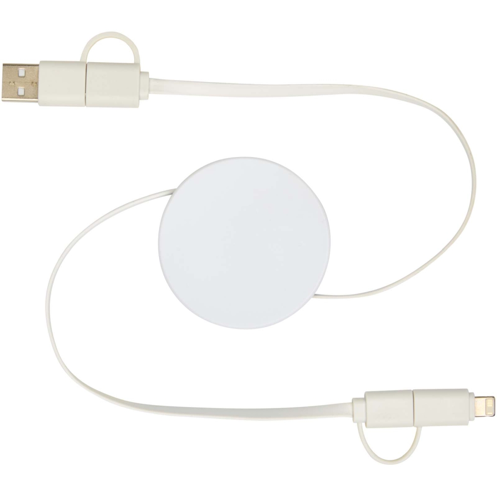 Vysouvací datový synchronizační a rychlonabíjecí 40W kabel 5 v 1 z recyklovaného plastu o délce 90 cm, bílá