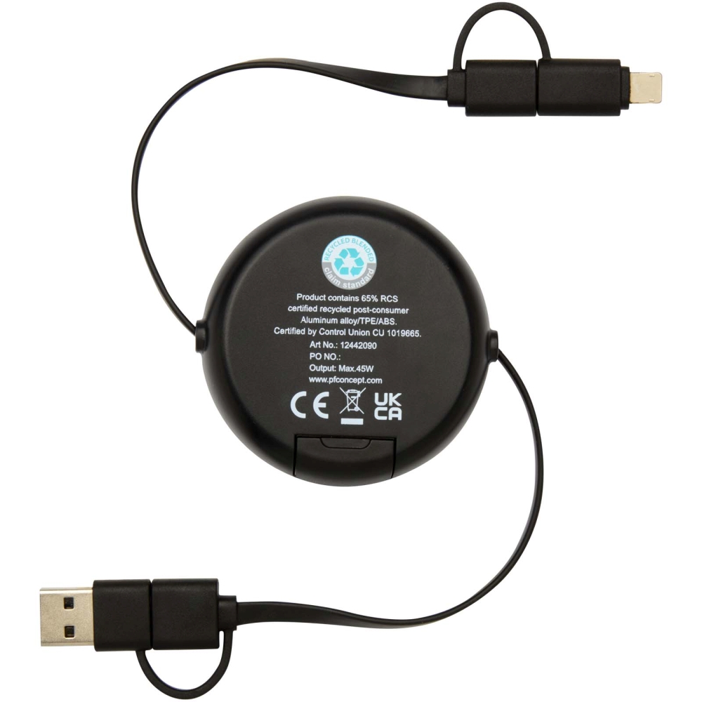Vysouvací datový synchronizační a rychlonabíjecí 45W kabel 5 v 1 o délce 100 cm z recyklovaného plastu a hliníku, černá