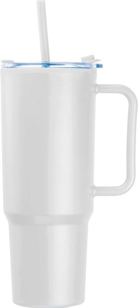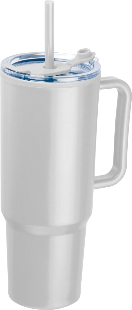 Dvoustěnná XXL termoska z plastu s objemem 1200 ml, praktickým madlem a odnímatelným brčkem ve víku. Rozměry: o 10 x 25 cm