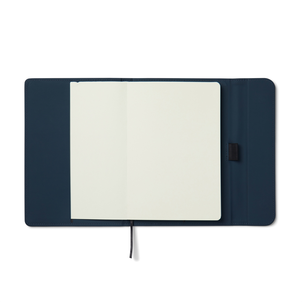 Stylový obal na zápisník z matného z recyklovaného PU. Magnetické zavírání, integrovaný držák na pero. Obsahuje vyměnitelný zápisník s 80 listy/160 stranami linkovaného recyklovaného papíru (70g/m2). Vyrobené z GRS recyklovaných materiálů. GRS (Global Recycle Standard) je globální standard, který umožňuje ověřit použití recyklovaného materiálu v produktu napříč celým dodavatelským řetězcem. Celkový podíl recyklátu dle váhy produktu: 54 % (zápisník) a 18 % (obal). Rozměry: 16 x 2 x 22.5 cm.