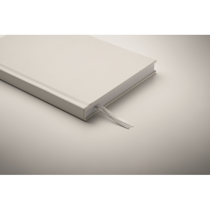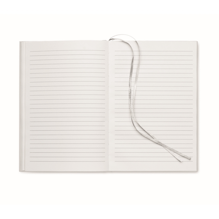 Zápisník A5 z 60% recyklovaného polyesteru a 40% PU. 256 linkovaných stran (128 listů) z recyklovaného 70g papíru. Dvě záložky z polyesterové stuhy.Rozměry: 14,5 x 21cm