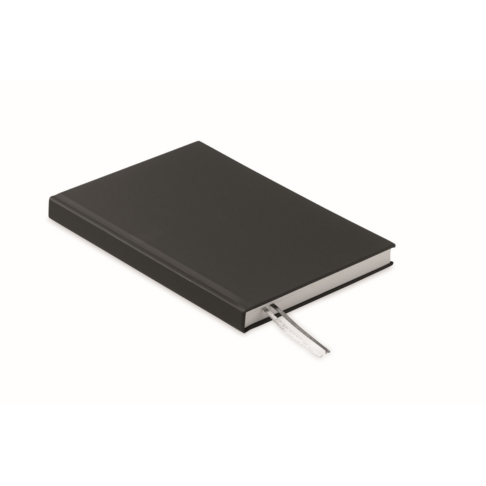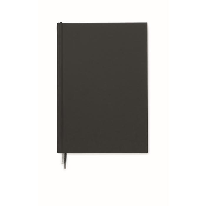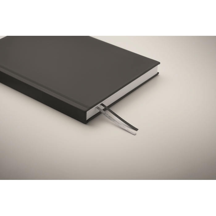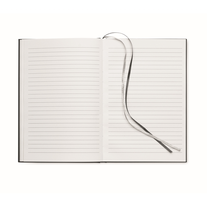 Zápisník A5 z 60% recyklovaného polyesteru a 40% PU. 256 linkovaných stran (128 listů) z recyklovaného 70g papíru. Dvě záložky z polyesterové stuhy.Rozměry: 14,5 x 21cm