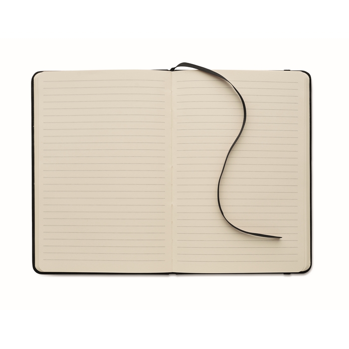 Zápisník formátu A5 s deskami ze 40 % recyklovaného PU a 60 % PU. 160 linkovaných stran (80 listů) recyklovaného 70g papíru. Ladící záložka z polyesteru.Rozměry: 21,2 x 14,6 x 1,6cm