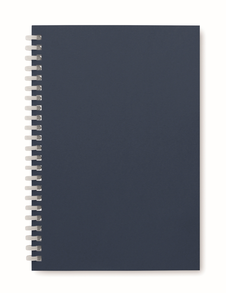 Zápisník A5 s kroužkovou vazbou a měkkou obálkou z recyklovaného kartonu. 160 recyklovaných linkovaných stran (80 listů). Rozměry: 14,2 x 0,9 x 20,7 cm