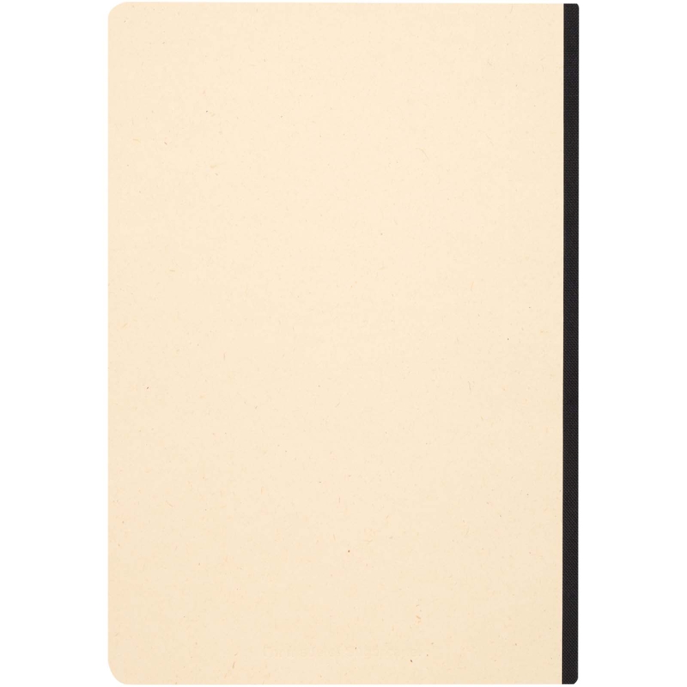 Zápisník formátu A5 s měkkou obálkou, zaoblenými rohy a 72 linkovanými listy papíru o gramáži 90 g/m2. Obálka je vyrobena z RPET a z papíru z cukrové třtiny. Rozměry: 21 x 14,5 cm