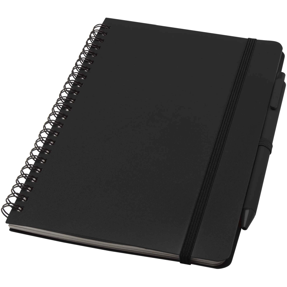 Zápisník s pevnou obálkou formátu A5 z plastu recyklovaného z oceánu s kuličkovým perem, černá