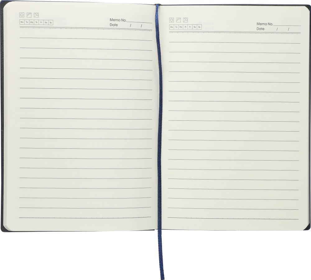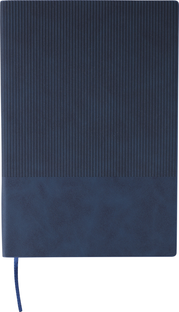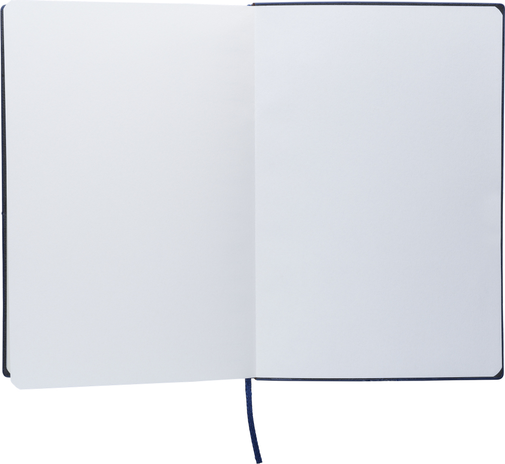 Recyklovaný PU zápisník (cca A5) s tvrdou vazbou a manšestrovou úpravou na horní části přední a zadní strany. Součástí je záložka se stuhou a 100 linkovaných stránek (80 g/m2). Na zadní straně je vyražené recyklované logo. Rozměry: 20,8 x 14,4 x 1,3 cm