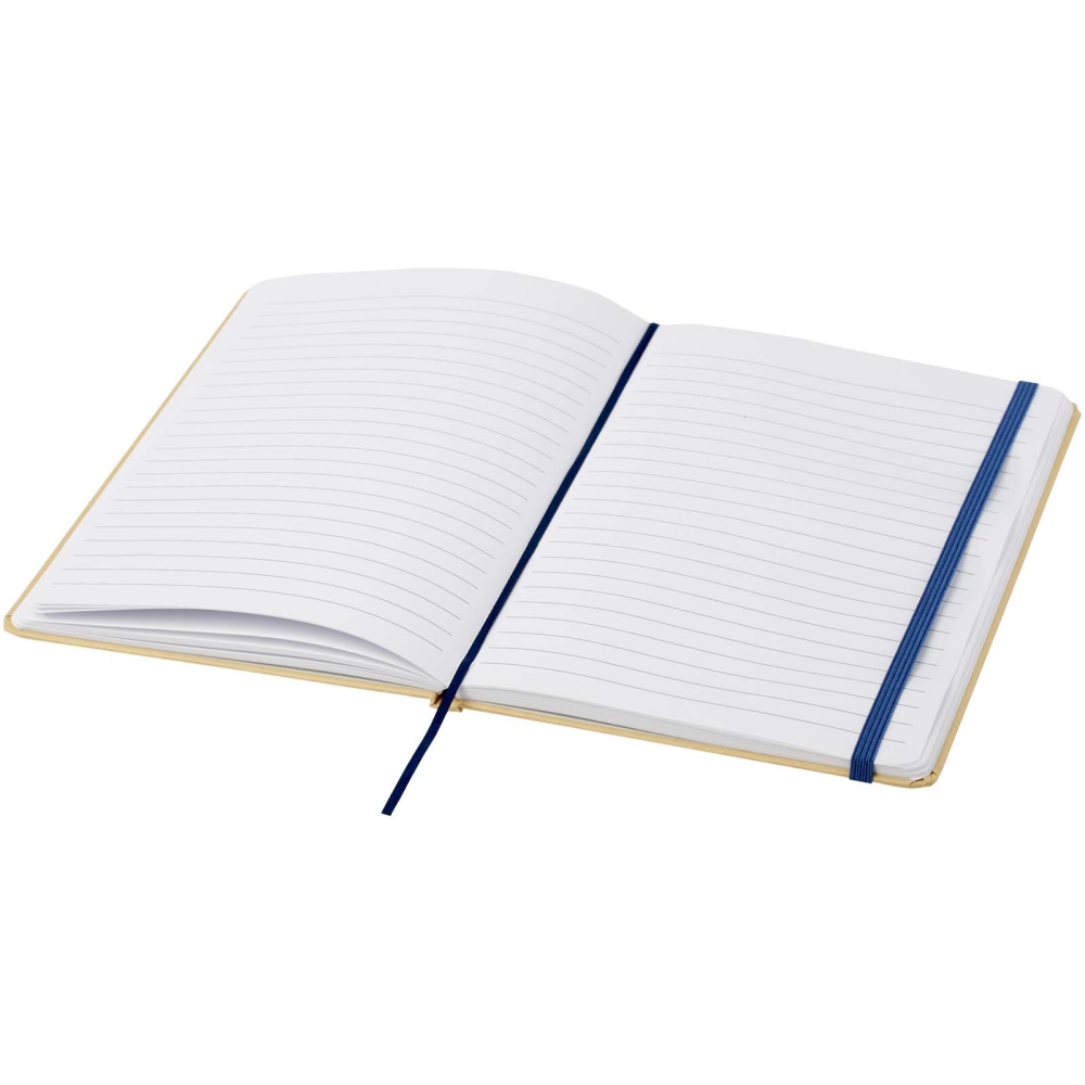 Zápisník formátu A5 s pevnou vazbou vyrobený z recyklované lepenky s 80 linkovanými listy papíru o gramáži 70 g/m2. Zápisník má elastické zapínání, stuhu a zaoblené rohy. Rozměry: 21 x 14,5 cm