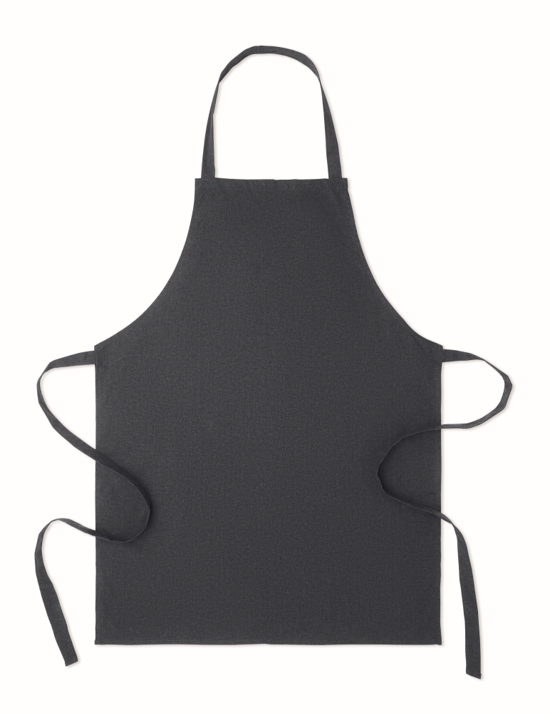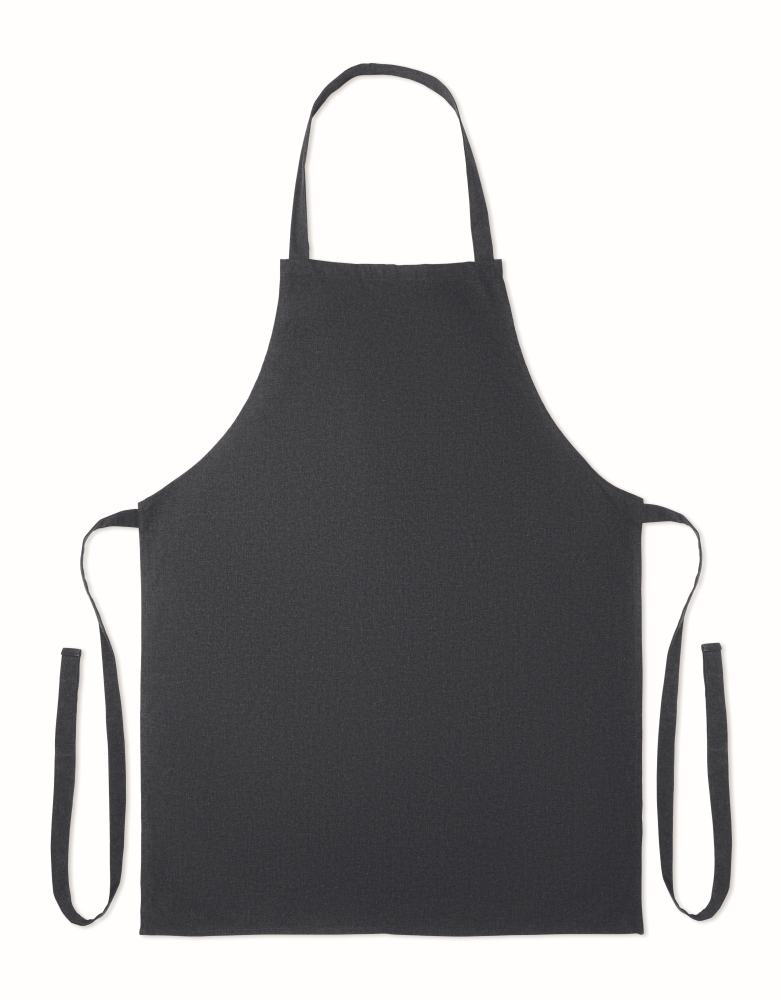 Zástěra z recyklované předspotřební bavlny v gramáži 180g (70 % recyklovaná bavlna a 30 % polyester RPET). Tento produkt se po tisku může srazit. Rozměry: 65 x 90 cm